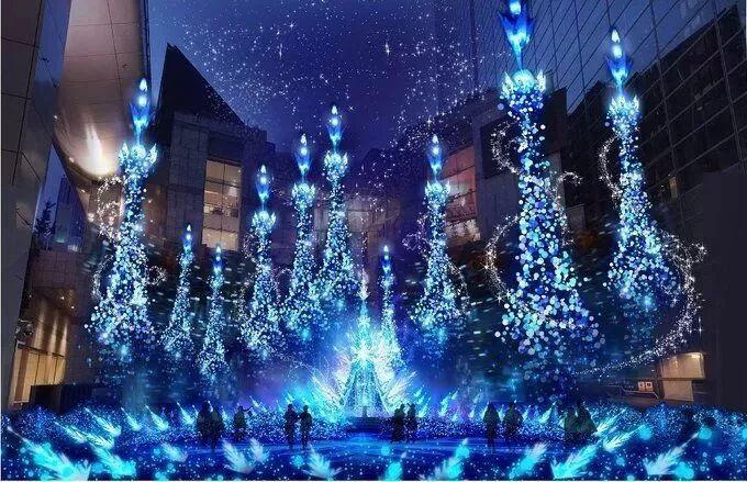 六本木hills楼下的けやき坂通り、处处都是宣告冬天到来的白色和蓝色灯闪耀的光芒。由白色和蓝色灯组成的“snow&blue”的装饰,营造了梦幻的气氛~超有人气的摄影场所。