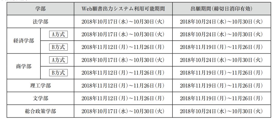 2018秋——日本名校报考时间汇总(下